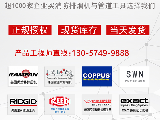 雷德國(guó)際貿(mào)易(昆山)有限公司是一家專注于進(jìn)口管道工具、消防排煙機(jī)代理銷售的綜合性企業(yè),公司目前主要銷售法國(guó)雷德?tīng)朙EADER、美國(guó)RAMFAN防爆排風(fēng)機(jī),、美國(guó)進(jìn)口REED力得管道工具以及RIDGID里奇全系列管道切割工具,EXACT依艾特手持式電動(dòng)切管機(jī),致力于為客戶提供涉及管道相關(guān)問(wèn)題的整體解決方案。產(chǎn)品廣泛應(yīng)用于市政管網(wǎng)、消防、電力、石油、天然氣、船舶、煤礦、軍工、化工、造紙、制藥、鋼鐵、食品等行業(yè)的各種生產(chǎn)過(guò)程中。優(yōu)蘭特RAMFAN產(chǎn)品型號(hào)有:UB20排煙機(jī)/XP520排風(fēng)機(jī)/RV760消防風(fēng)機(jī)/RV1500文丘里風(fēng)機(jī)/AFi75xx防爆風(fēng)機(jī)/AFi50xx防爆排煙機(jī)/EFi120xx防爆排風(fēng)機(jī)/EFi75xx消防防爆排風(fēng)機(jī)/UB20xx消防排煙風(fēng)機(jī)/UB30/GF164SE/WF540/WF390進(jìn)口風(fēng)···
